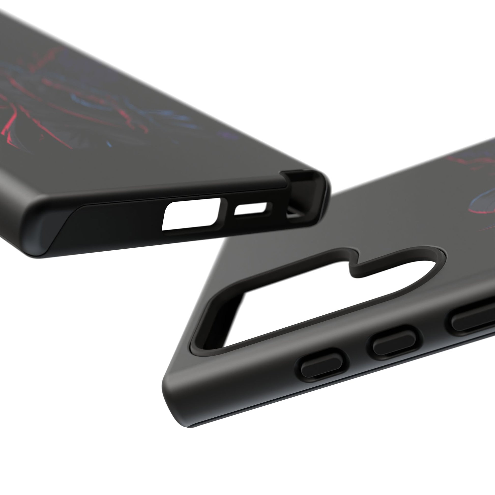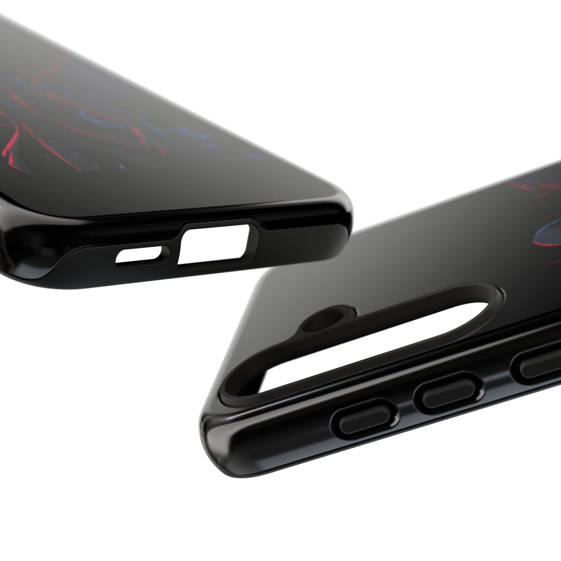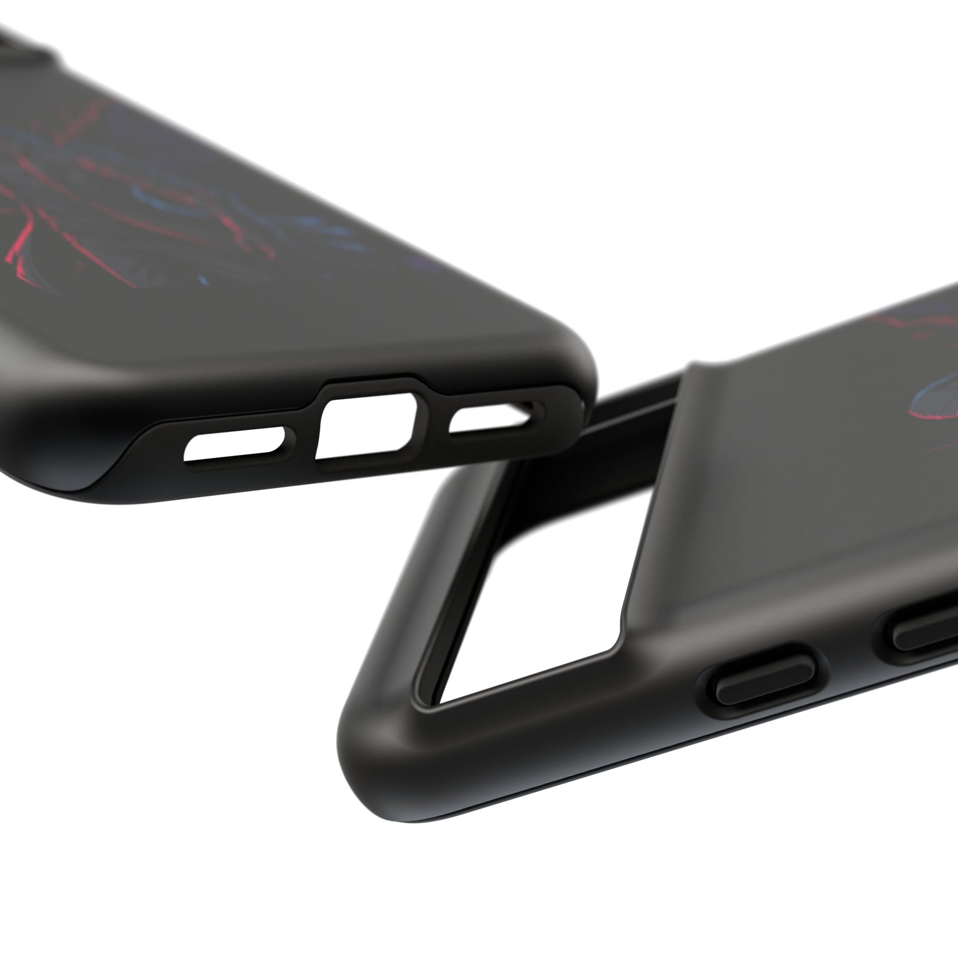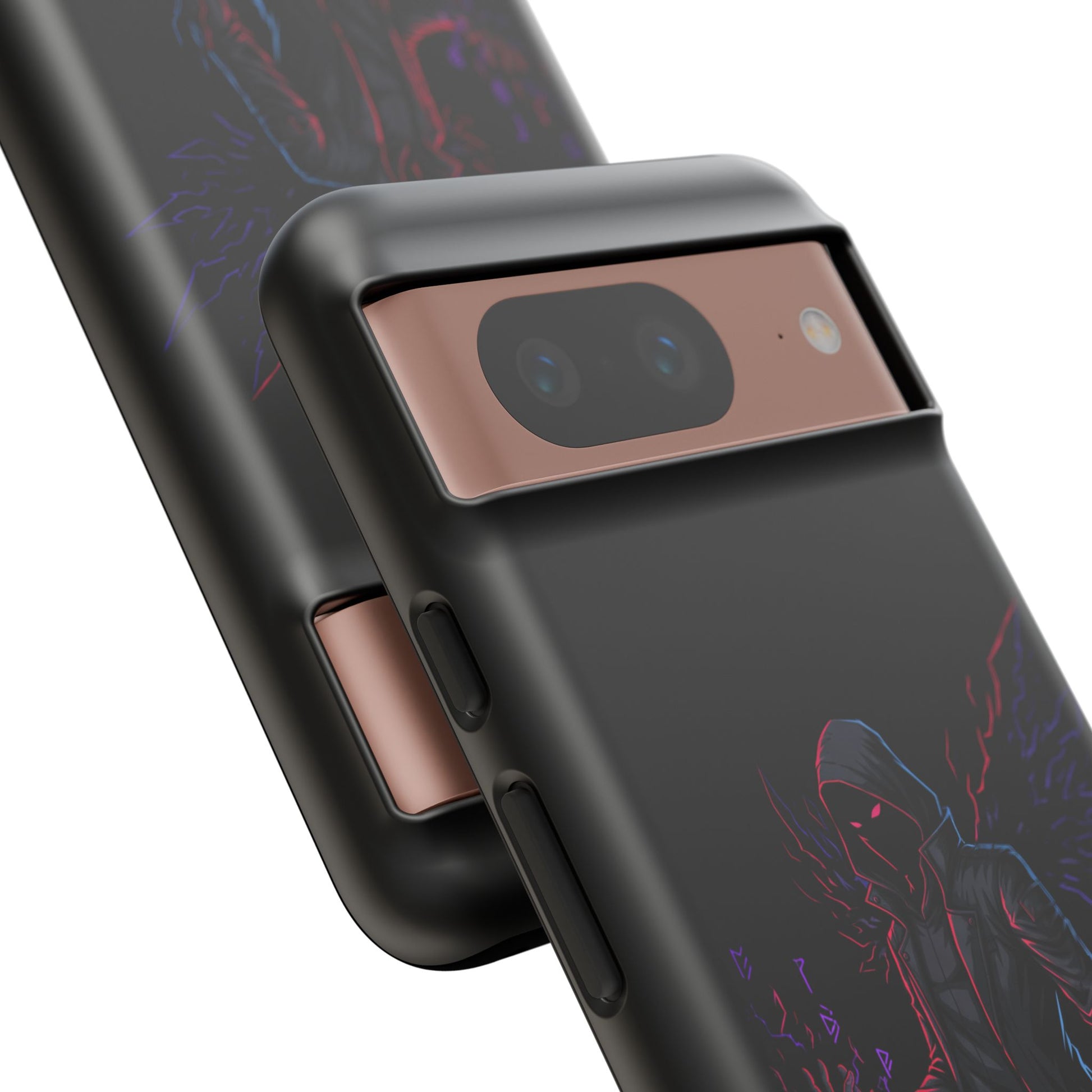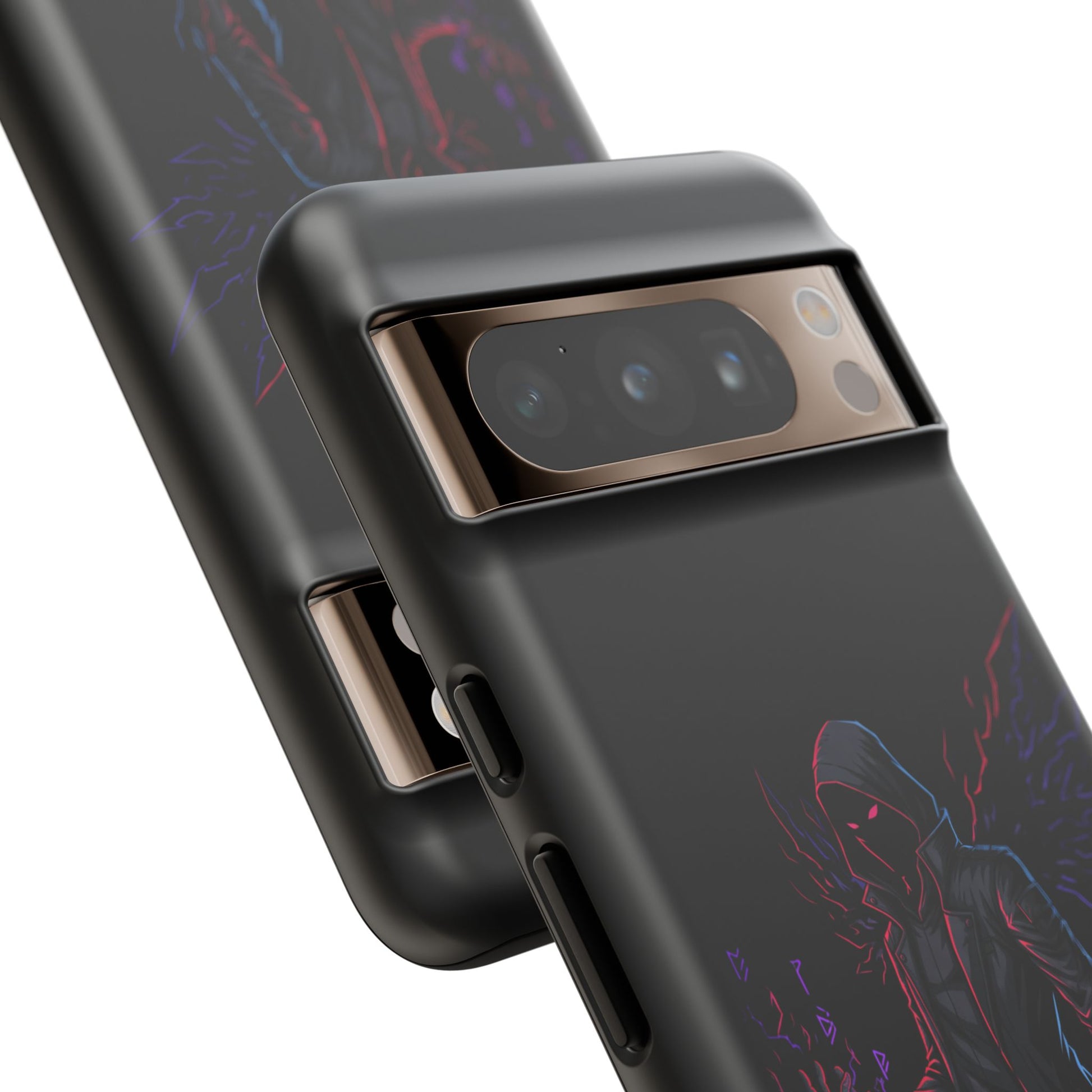 Dark Hoodie Shadow Warrior Phone Case – Protective Tough Case with Neon Winged Grim Reaper Design