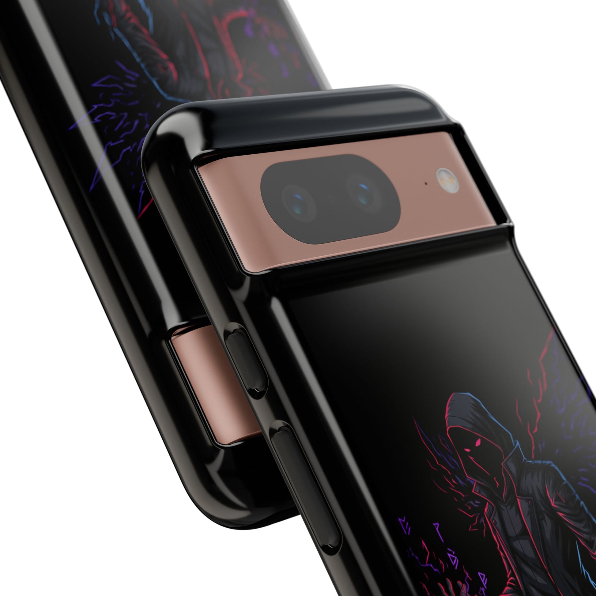 Slip into something dark and quietly electric. This phone case brings an urban-night aesthetic to your everyday carry: a hooded figure shrouded in shadow with neon-streaked wings and ember-like accents. It’s the kind of design that reads like a midnight alleyway soundtrack — moody, guarded, and alive with subtle motion. For someone who moves through the city with a careful edge, this case keeps that attitude visible and protected. The glossy or matte surface makes the artwork pop while the dual-layer construction keeps the phone safe from drops and scuffs. Carry a small fragment of that after-dark energy with you — low-key, bold, and built to last.