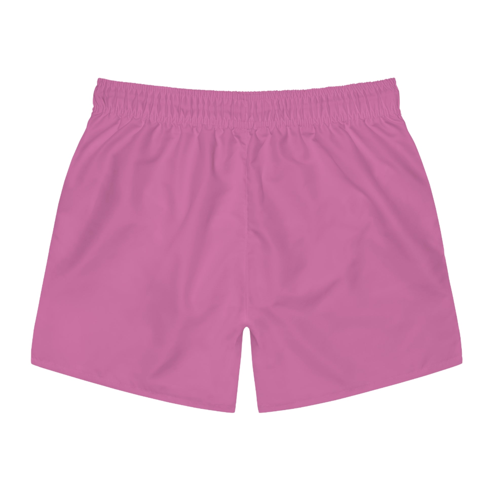 Soft, lightweight swim trunks in a cheerful rose-pink with a subtle, vintage-inspired monogram at the left thigh. These trunks feel airy on hot days and dry quickly after a dip, so you can move from water to boardwalk without fuss. The elastic drawstring waist lets you dial in a comfortable fit, while mesh-lined pockets keep small essentials secure and breathable. The cut hits mid-thigh for easy movement and a relaxed, confident silhouette — wear them for sunrise swims, poolside hangs, or laid-back beach strolls.